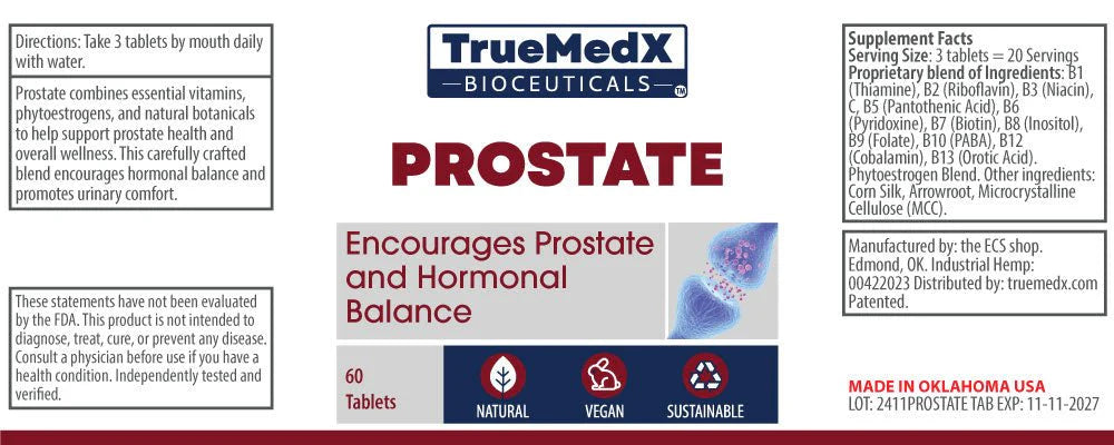 TrueMedX Prostate is a premium supplement designed to support prostate function, hormonal balance, and overall vitality. With a blend of essential vitamins, natural phytoestrogens, and powerful botanicals like Corn Silk and Arrowroot, this formula is tailored to promote urinary comfort and maintain optimal prostate health.